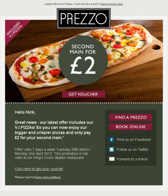 One example that has stood out recently is the following email from Pizza Express luring me to eat more of their glorious pizzas: