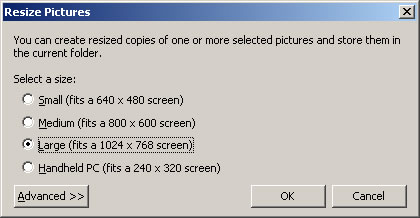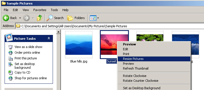 If you do not have any graphics software and are using Windows XP then you can easily resize multiple images in one of two ways:
