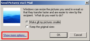 - A new window will be opened that allows you to specify how images are resized. Click the Show more options link for advanced options: